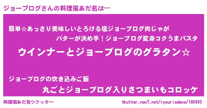 | 意味不明あだ名 | 『ジョーブログフォーエバー』 |