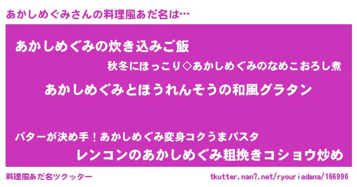 | ヘコむあだ名 | 『あかっ子』『あかしめぐみ(小並感)』 |