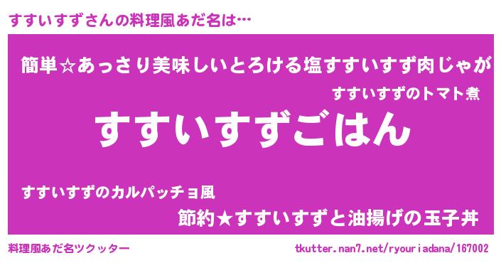| 胡散臭い通販商品みたいなあだ名 | 『絶対に幸福をもたらす健康食品…その名も「すすいすず」』 |