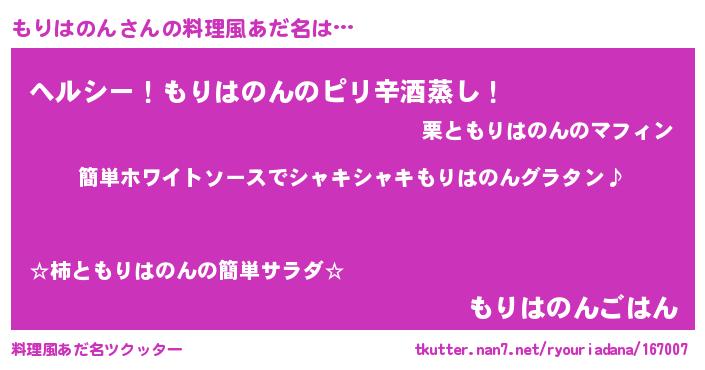 | 男性向けラノベタイトル風あだ名 | 『もりはのんの嫁は女の子じゃないと思った?』 |