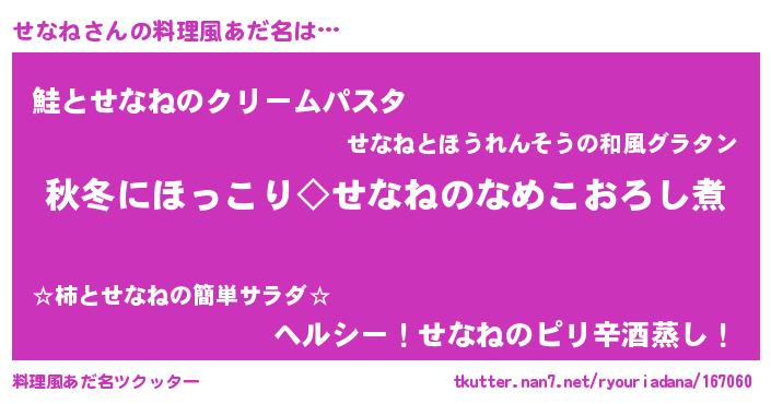 | ヒーロー風カッコイイあだ名 | 『天空の使者せなね』『最強戦士セナネ』 |