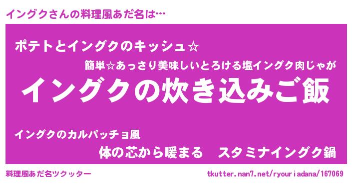 | 胡散臭い通販商品みたいなあだ名 | 『伝統あるサプリメント…その名も「イングク」』 |