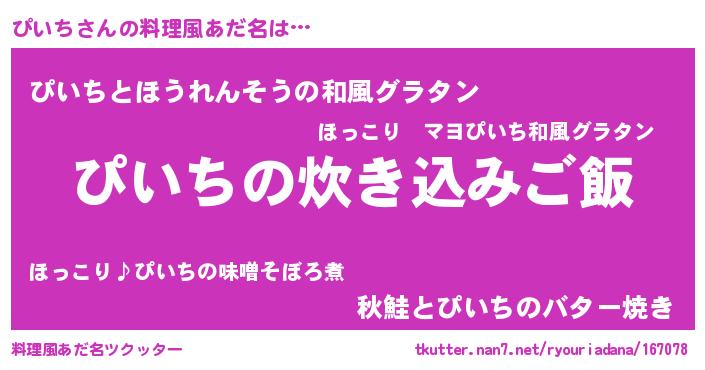 | ヘコむあだ名 | 『ぴいち(笑)』『ぴいもー』『豆乳』 |