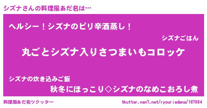 | ヘコむあだ名 | 『シズナ(震え声)』『シズお』 |