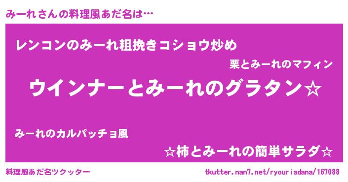 | 男性向けラノベタイトル風あだ名 | 『やはりみーれの青春ラブコメはまちがっている 』 |
