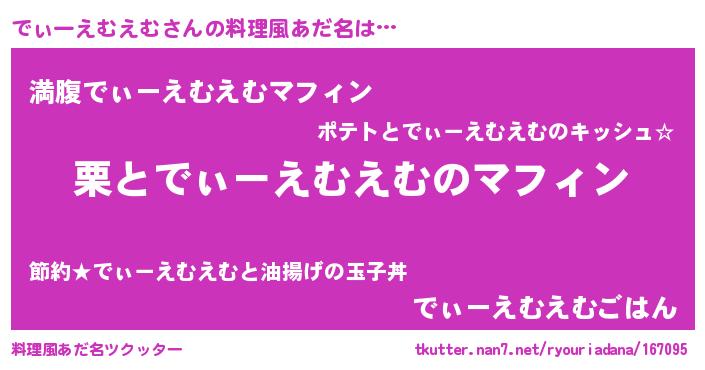 | ヘコむあだ名 | 『でぃーえむえむ(震え声)』『でぃぷりん』 |