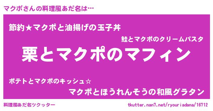 | 男性向けラノベタイトル風あだ名 | 『はたらくマクポさま!』『マクポの憂鬱』 |