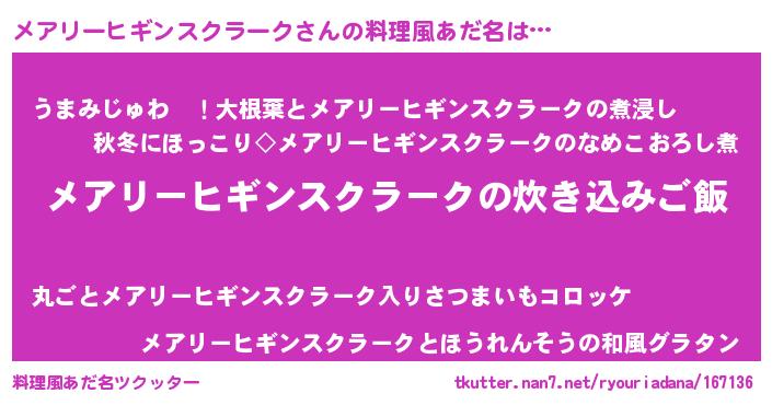 | 意味不明あだ名 | 『メアリーヒギンスクラークフォーエバー』 |