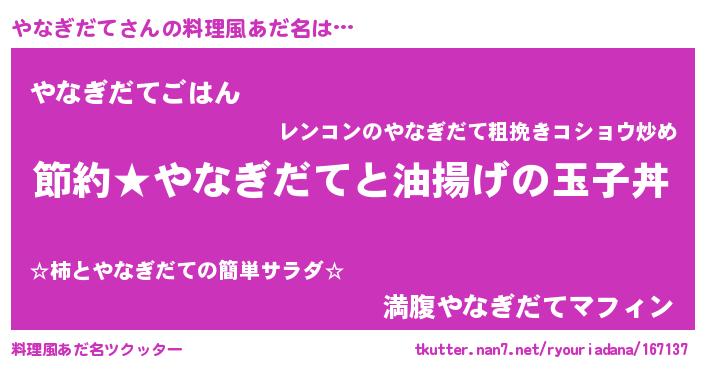 | ヘコむあだ名 | 『やなもー』『やなぎだて(苦笑)』 |