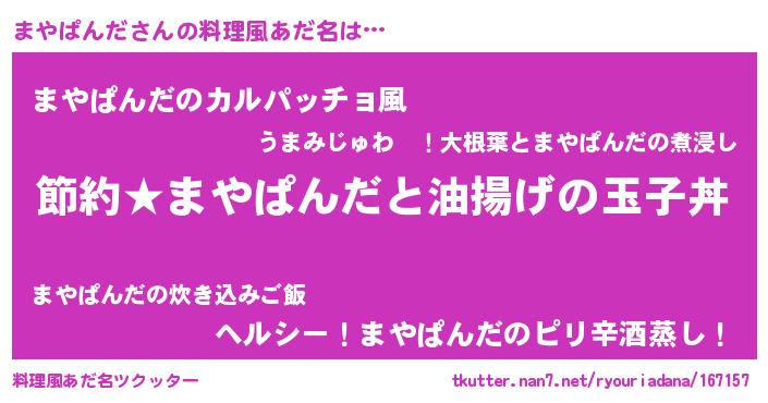 | 2回繰り返すあだ名 | 『まやまや』『しゃきしゃき』 |
