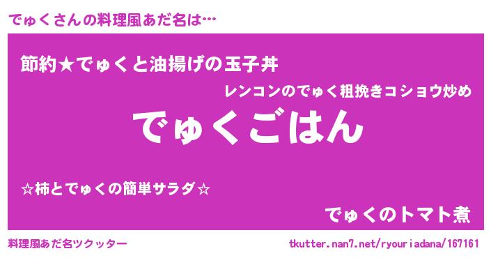 | ヘコむあだ名 | 『でゅにー』『つくし』『でゅお』 |