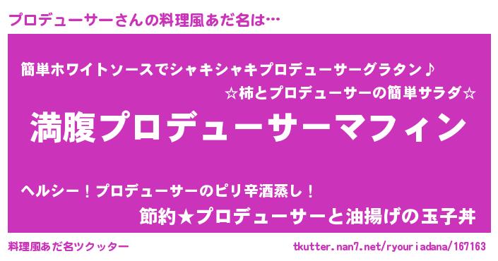 | 意味不明あだ名 | 『永久保存プロデューサー』 |