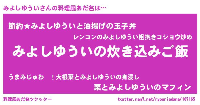 | 恥ずかしいあだ名 | 『プリティーみよしゆうい』『みよっちょ』 |