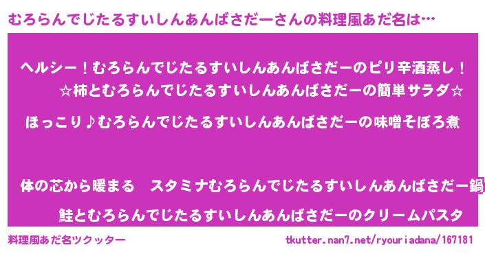 | 恥ずかしいあだ名 | 『プリティーむろらんでじたるすいしんあんばさだー』 |