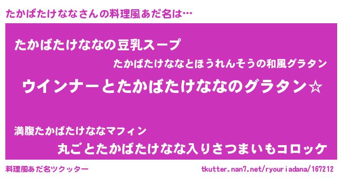 | ポケモン風あだ名 | 『タカバダネ』『ヒタカバタケナナ』 |