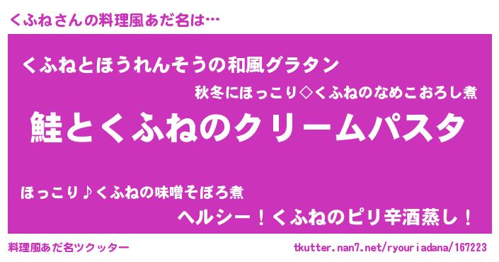 | ヘコむあだ名 | 『くふもー』『くふっ子』『レバニラ』 |