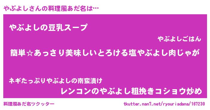 | 意味不明あだ名 | 『永久保存やぶよし』『自称やぶよし』 |