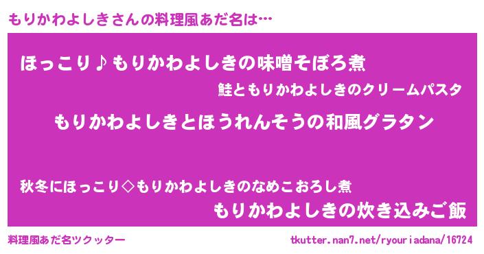 | 男性向けラノベタイトル風あだ名 | 『転生したらもりかわよしきだった件』 |