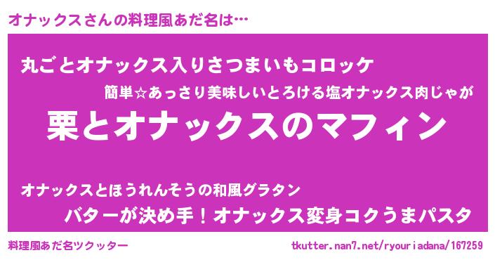 | 意味不明あだ名 | 『住所不定無職オナックス(5歳)』 |