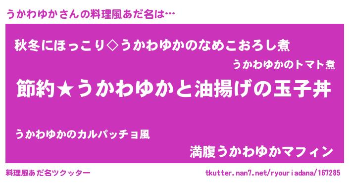 | 恥ずかしいあだ名 | 『プリティーうかわゆか』『うかちん』 |