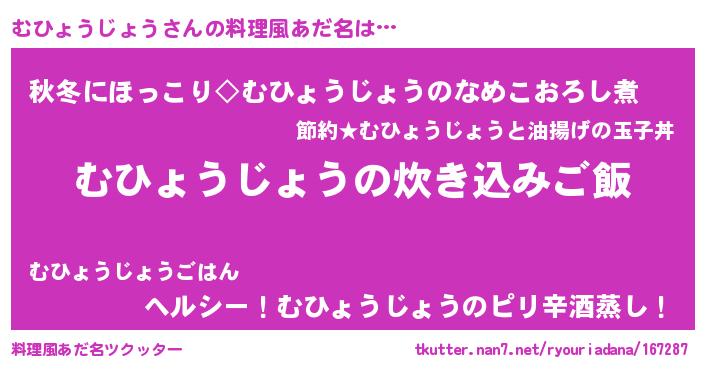 | ヘコむあだ名 | 『むひもー』『むひょうじょう(笑)』 |