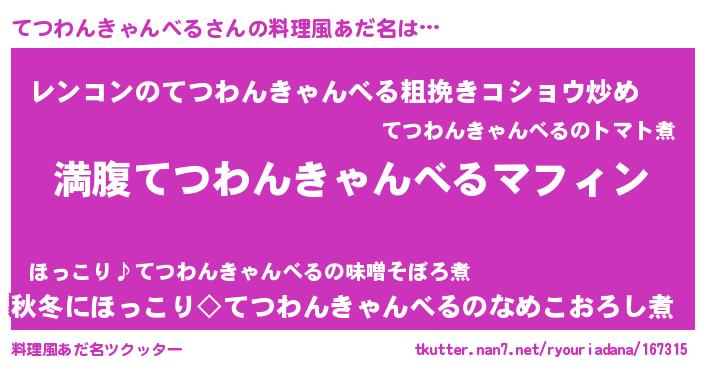 | 胡散臭い通販商品みたいなあだ名 | 『絶対に幸福をもたらす水素水…その名も「てつわんきゃんべる」』 |
