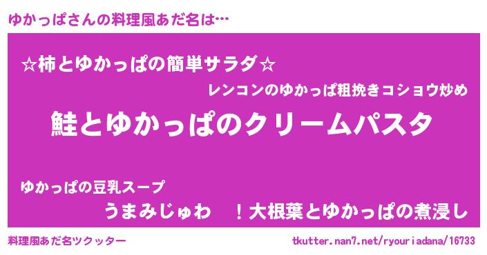 | 男性向けラノベタイトル風あだ名 | 『ノーゲーム・ノーユカッパ』 |