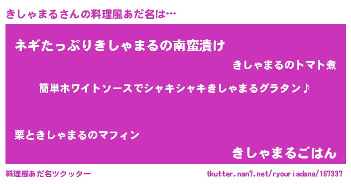 | 男性向けラノベタイトル風あだ名 | 『きしゃまるの嫁は女の子じゃないと思った?』 |