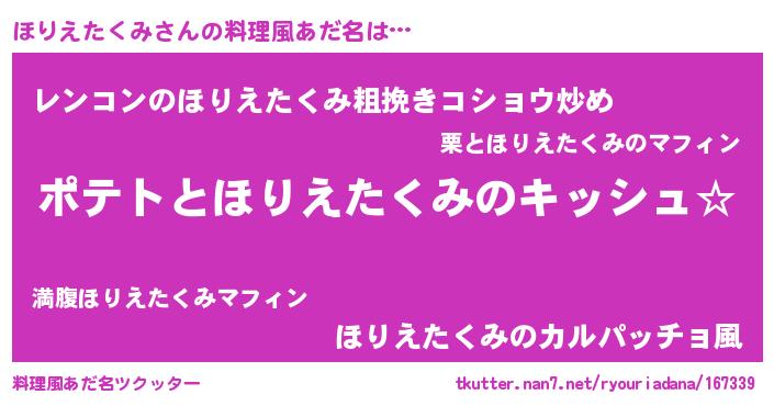 | ヘコむあだ名 | 『ほりを』『ほりえたくみ(爆)』 |