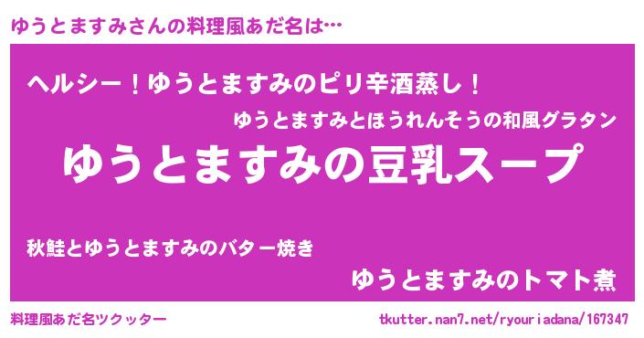 | ヘコむあだ名 | 『ゆうぷりん』『ゆうとますみ(笑)』 |