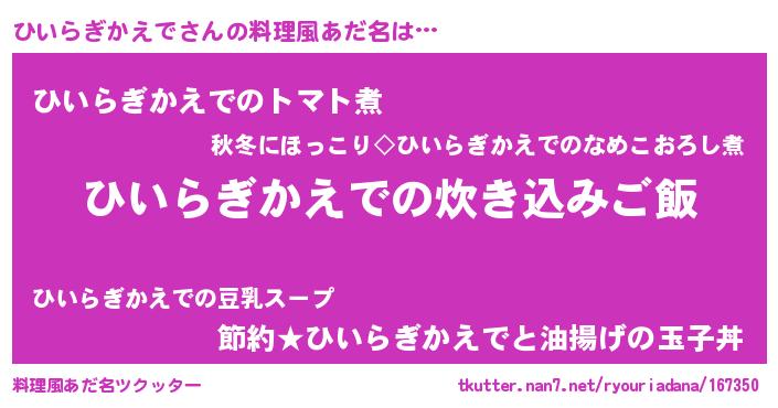 | 欧米人風あだ名 | 『ひいらぎかえで・ステッグマイヤー』 |