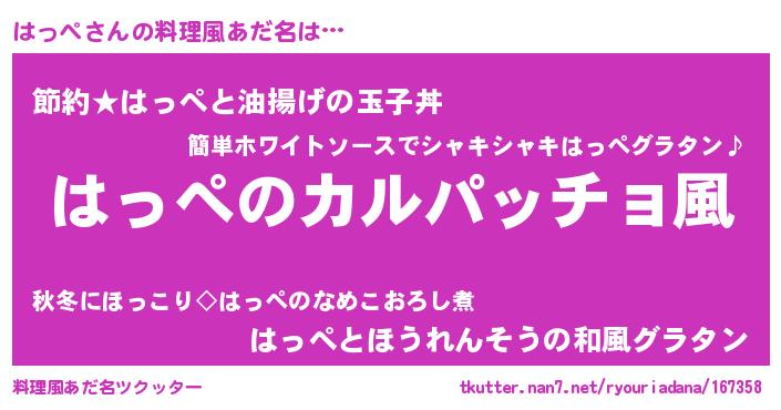 | 意味不明あだ名 | 『住所不定無職はっぺ(1歳)』 |