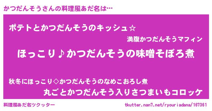 | 男性向けラノベタイトル風あだ名 | 『かつだんそうの憂鬱』 |