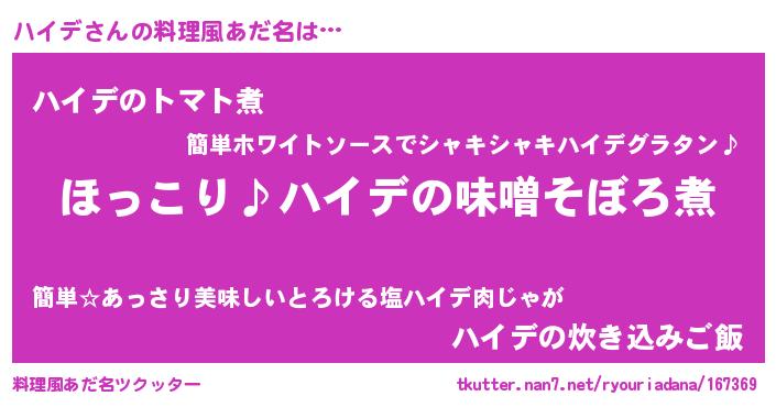 | 恥ずかしいあだ名 | 『プリティーハイデ』『ハイリンリン』 |