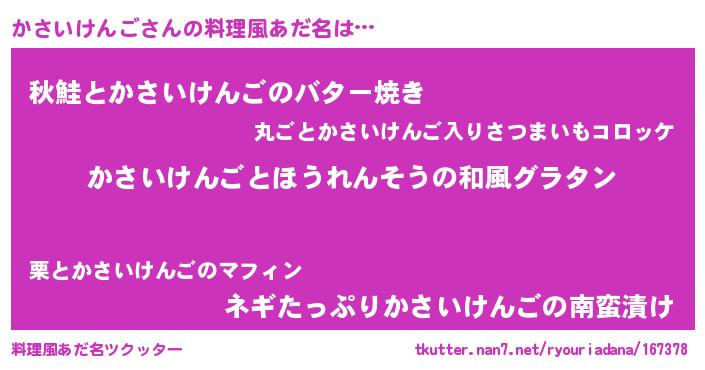 | 肩書あだ名 | 『かさいけんご大佐』『かさいけんご先生』 |