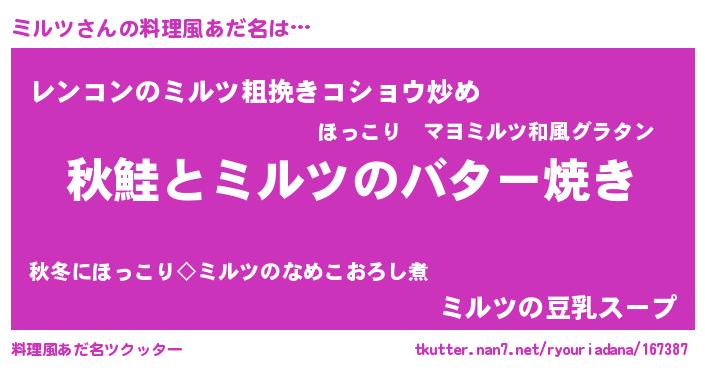 | ヘコむあだ名 | 『ミルツ(遠い目)』『ミルっちょ』 |