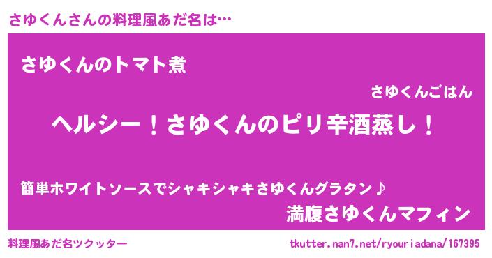 | 男性向けラノベタイトル風あだ名 | 『Re:さゆくんから始める異世界生活』 |