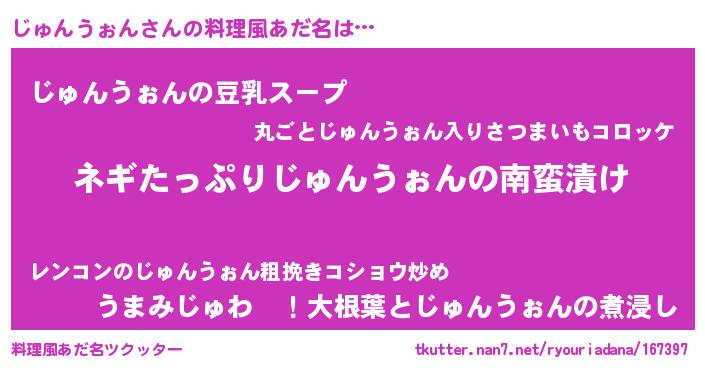 | ヘコむあだ名 | 『じゅもー』『じゅぷりん』 |