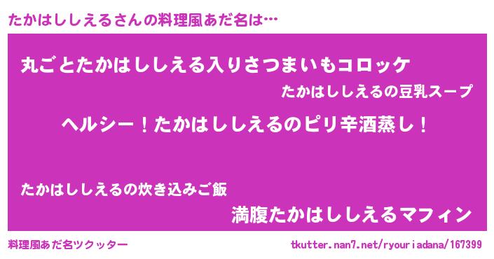 | 欧米人風あだ名 | 『ケンブリッジたかはししえる』 |