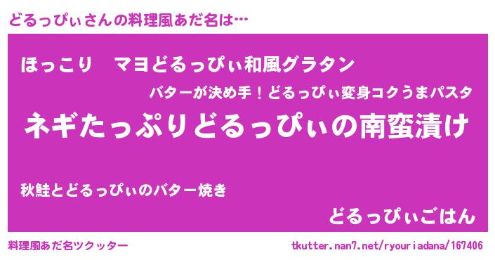 | 胡散臭い通販商品みたいなあだ名 | 『億万長者になれるブレスレット…その名も「どるっぴぃ」』 |
