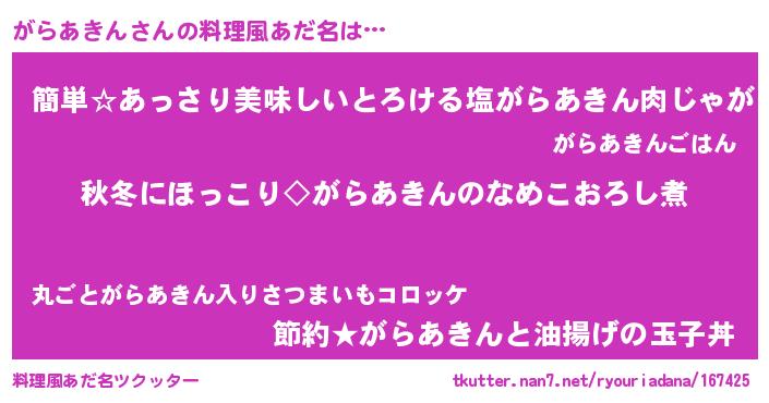 | ヘコむあだ名 | 『がらあきん(苦笑)』『がらにゅー』 |