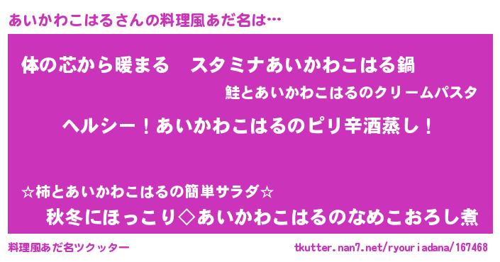| 意味不明あだ名 | 『自称あいかわこはる』 |