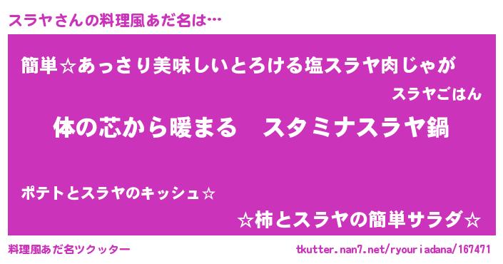 | 意味不明あだ名 | 『スラヤフォーエバー』『永久保存スラヤ』 |