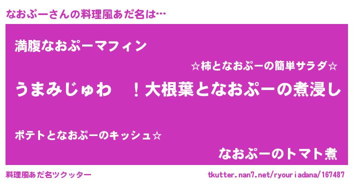 | ヘコむあだ名 | 『レバニラ』『なおぷー(笑)』 |