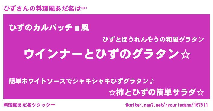 | 女子向けラノベタイトル風あだ名 | 『ひず伯爵の花嫁』『ひずの玉の輿計画!』 |