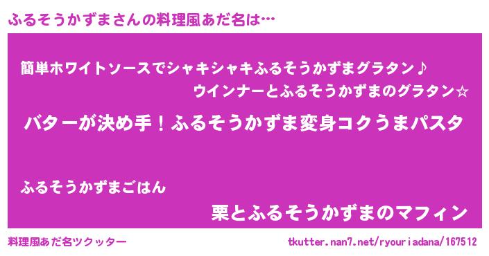 | 女子向けラノベタイトル風あだ名 | 『ふるそうかずま恋絵巻』 |