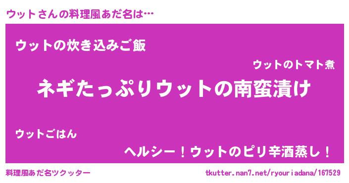 | 意味不明あだ名 | 『ペロリンウット』『自称ウット』 |