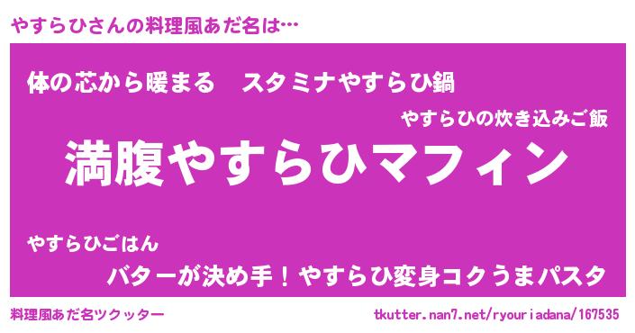 | ヘコむあだ名 | 『やすらひ(爆)』『牛乳』『やす太郎』 |