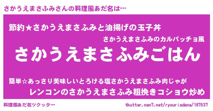 | 男性向けラノベタイトル風あだ名 | 『転生したらさかうえまさふみだった件』 |