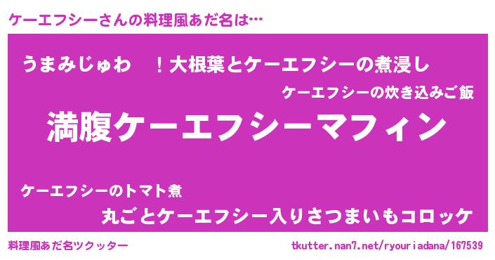 | 意味不明あだ名 | 『永久保存ケーエフシー』 |